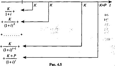 Для вывода формулы текущей рыночной стоимости облигаций составим диаграмму выплат (рис. 4.5).