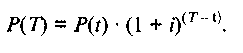 Из формулы (4.3.1) следует, что при Т > t эквивалентность сумм Р(Т) и P(t) означает, что сумма Р(Т), уменьшающаяся при движении в прошлое за каждый единичный промежуток в