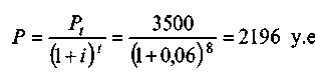 Найдем современную величину 3500 у.е. через 8 лет при ставке 6% из формулы (4.2.2):