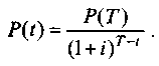 Это означает, что при Т> t сумма P(t), наращенная по ставке i сложных процентов, превратится в момент Т в сумму P(T), однако, если Т < t, то сумма Р(Т), наращенная по ставке i сложных процентов, превратится в момент t в сумму Р (t).