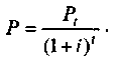 Это значение называется текущей ценностью будущей потребности. Стандартная формула (4.2.2) определяет стоимость будущего вложения, исходя из заданной текущей стоимости Р и коэффициента дисконтирования i