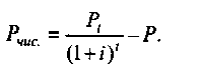 В качестве варианта используется понятие чистой дисконтированной стоимости Рчис, которая получается путем вычитания исходного вложения из будущей стоимости, таким образом: