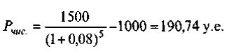 Пример 4.15. Рассмотрим вложение в 1000 у.е., которое станет 1500 у.е. через пять лет при условии годовой ставки дисконта в 8%.
