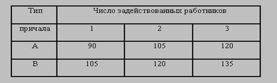 2. На основании прогноза погоды на декаду вы определяете число рабочих, которое будет задействовано на причале каждого типа.