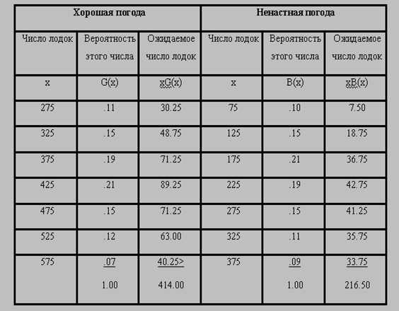 Кроме того, маркетологи составили прогнозы распределения числа заявок на прокат лодок отдельно для хорошей и отдельно для ненастной (пасмурной, дождливой, туманной и т.д.) погоды (см. табл.2).