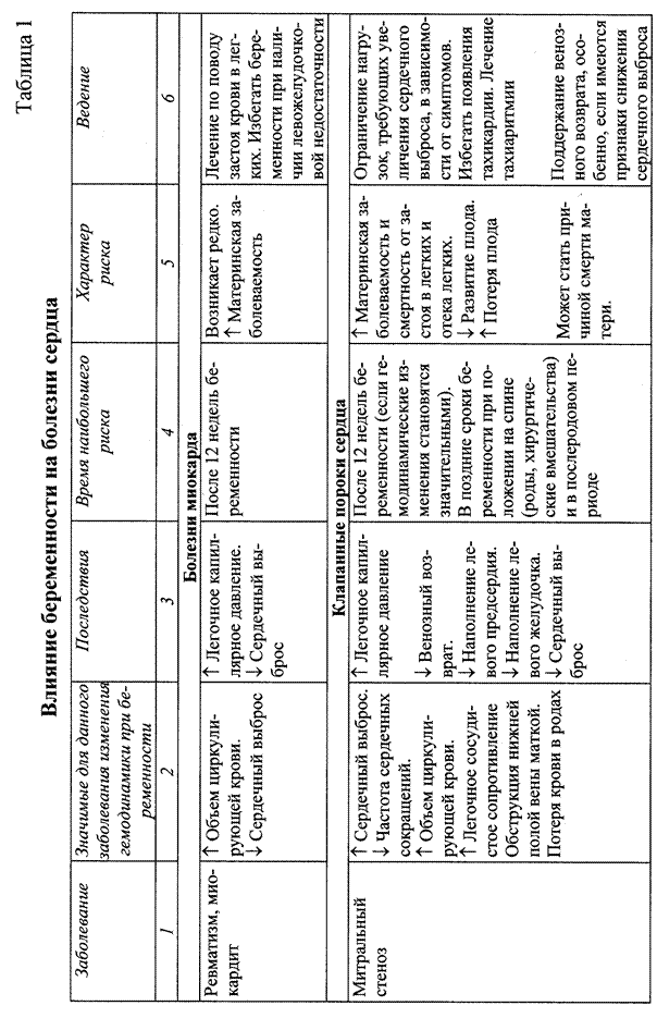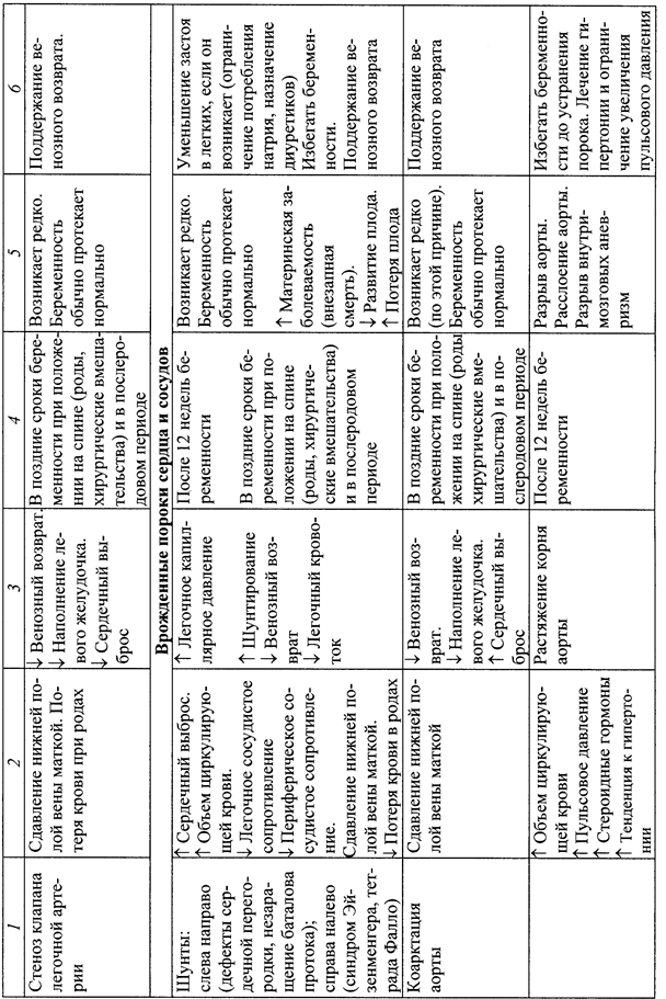 Значение возникающих при беременности гемодинами-ческих сдвигов при основных заболеваниях сердца и аорты и некоторые рекомендации по ведению, предложенные J.H. McAnulty (1985) и др., представлены в табл. 1.
