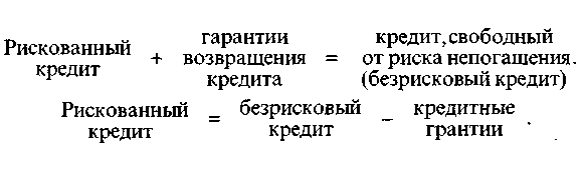 Таким образом, в реальности получение любого кредита по своей сути эквивалентно получению собственно безрискового кредита и одновременному предоставлению гарантии погашения данного кредита. В сущности, кредитор выдает безрисковый кредит, одновременно уменьшая его на величину гарантии, требуемой для обеспечения его возврата. Соотношение гарантии и безрискового кредита может сильно меняться.