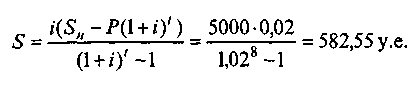 Таким образом, сумма ежегодного вклада должна быть такой, чтобы соответствовать по сегодняшней покупательной способности 582,55 у.е.