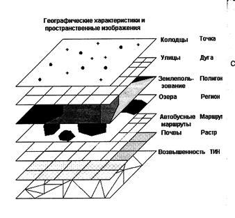 Рис.15. Географическая связка, составленная из разных моделей данных ГИС для определенной местности