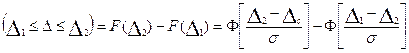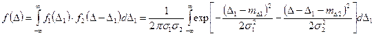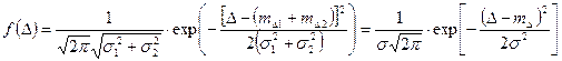 Плотность распределения суммы Δ1 и Δ2 с нормальными законами распределения можно записать следующим образом: