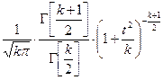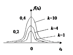 , - ∞ < t < ∞, k = n – 1- число степеней свободы t.