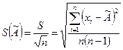 2) При n > 3, n ≤ 50 по специальному критерию W для нормального или логарифмического нормального распределения. Если результаты наблюдения можно считать, что они принадлежат нормальному распределению, то из результатов наблюдения исключаются грубые погрешности, а т.к. среднее арифметическое обладает некоторой случайной погрешностью, то вводится понятие оценки СКО среднего арифметического. Его выражают следующим образом: