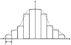 По оси абсцисс откладывают в определённом масштабе интервалы Δxi в порядке их возрастания, и на каждом строят прямоугольник высотой, равной оценке средней плотности распределения. Площадь всех прямоугольников равна 1. После построения гистограммы теоретически подбирают плавную кривую распределения fi*(x), которая отражает все основные черты статистического распределения.