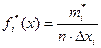 Полученные значения xi располагаются в порядке возрастания. Затем все результаты наблюдений делят на r малых интервалов длиной Δxi (i = 1,2, …, r) (при n = 30-100 рекомендуется выбирать r=5-9). Подсчитывают частоты mi*, равные числу результатов наблюдения, лежащих в каждом i–ом интервале и оценки средней плотности распределения в интервале Δxi.