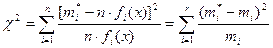Суть критерия χ2 состоит в контроле отклонений гистограммы опытных данных, от гистограммы с таким же числом интервалов, построенной на основе теоретического нормального распределения f(x). Сумма квадратов разности опытной частоты mi* и теоретической mi не должна превышать значений χ2k,q, в зависимости от заданного уровня значимости q и числа степеней свободы k=r-3. 3 – число наложенных связей.