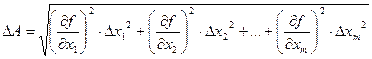 Для простоты считают, что значения xi распределены по нормальному закону, измерения равноточные, погрешности измерения не коррелированны между собой. Очевидно, что абсолютная погрешность Δ измеряемой величины А является также функцией погрешности прямых измерений.