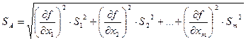 Если результаты прямых измерений xi определены с каким-то среднеквадратическим отклонением Si, то оценка среднеквадратического отклонения результатов косвенных измерений будет выражаться: