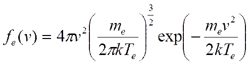 График функции fe(v) приведен на рисунке 2.6. Аналогичный вид имеют функции распределения по скоростям и для других частиц. Максимум функции fe(v) определяет наиболее вероятную скорость