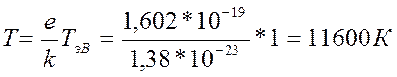 Рассчитаем, какая температура Т (в кельвинах) соответствует температуре ТэВ = 1 эВ:
