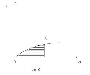 Поведение линии g отражает то обстоятельство, что с ростом затрат первого ресурса объём выпуска y растёт, но каждая дополнительная единица первого ресурса обеспечивает всё меньший прирост выпуска y.