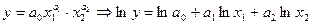 Пусть lny=w, lnx1=v1, lnx2=v2 получим аддитивную ПФ