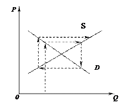 Далее необходимо исследовать поведение цен и объемов производства в том случае, если начальная точка не совпадает с равновесной.