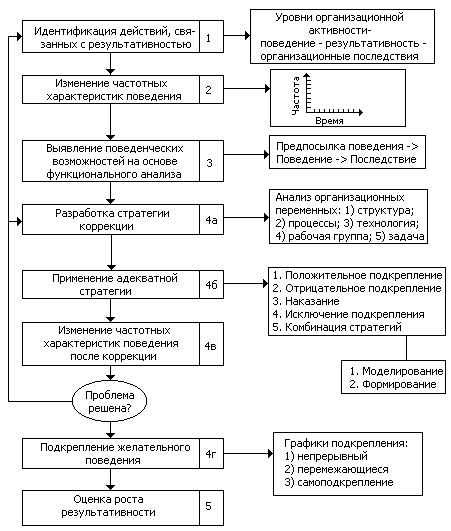 В соответствии с этим подходом основным инструментом изменения организационного поведения выступает контролируемый менеджером мотивационный процесс, в основе которого прежде всего лежит выявление функциональных, или желательных, видов поведения и их подкрепление. Подход базируется на уже во многом знакомых нам бихевиористских предпосылках: