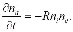 Скорость рекомбинации ионов и электонов в нейтральные частицы при их концентрациях ni, ne, na определяется коэффициентом рекомбинации R по уравнению: