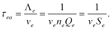 Однако для плотной плазмы важно наличие тяжелых частиц (ионов, атомов), при столкновении с которыми вектор скорости электронов претерпевает хаотическое (в среднем равномерное) рассеяние. При этом становится возможным превращение кинетической энергии электронов в энергию беспорядочного теплового движения других частиц. Полная нерегулярность направлений скорости электронов достигается уже после небольшого числа столкновений. Формула для времени пробега τеа имеет вид: