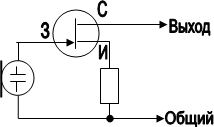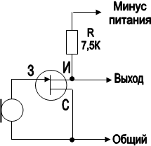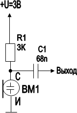 У электретных микрофонов с двумя выводами выход микрофона выполнен по схеме усилителя с открытым стоком (рис.б).