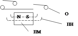 Работа электромагнитных телефонов основана на взаимодействии магнитных потоков, создаваемых постоянным магнитом и электромагнитом телефона, воздействующих на мембрану телефона. Основными частями ЭМ-телефона являются мембрана М, электромагнит, содержащий две полюсные надставки ПН с обмотками О, постоянный магнит ПМ. Все детали помещены в пластмассовый корпус, закрытый крышками с отверстиями. Мембрана удерживается силой постоянного магнита и дополнительно зажимается по краю крышкой.