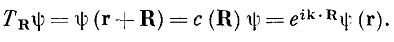 И наоборот, из последнего соотношения для всех векторов решетки Браве R следует первое определение. Поэтому вторая формулировка теоремы Блоха – собственные значения состояния