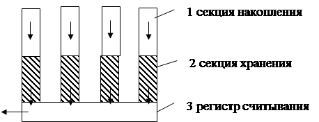ПЗС с покадровым переносом состоят из секции накопления, секции хранения и регистра считывания.