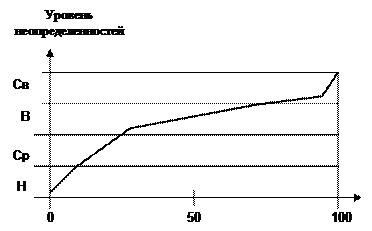 При низком уровне неопределенностей риск растет незначительно и часто им можно пренебречь. Средний и высокий уровни неопределенностей существенно повышают риск получения отрицательного результата. Сверхвысокий уровень не оставляем надежды на положительные результаты.