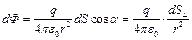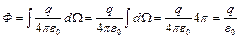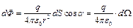 - поток через нижнюю часть нашей поверхности. Распишем это выражение, учитывая, что поверхность со знаком «+» и поверхность со знаком «-» опираются на телесные углы равные по величине, но противоположные по знаку: