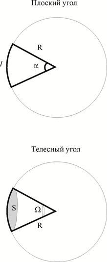 Количественной мерой плоского угла является отношение длины дуги l к ее радиусу R. При этом центр кривизны находится в вершине угла.