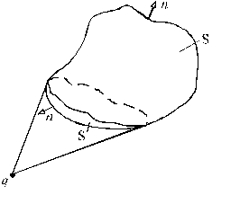 , телесный угол, соответствующий этой части поверхности, будет иметь знак «-». Тогда полный поток, пронизывающий нашу поверхность, может быть представлен в виде суммы двух потоков: