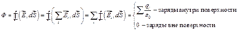 Мы рассмотрели только случай, когда поле создается единственным точечным зарядом. Если же поле создается системой точечных зарядов, то поток поля
