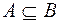 | Множество называют подмножеством другого множества или множество включено в множество , если каждый элемент множества является одновременно элементом множества . Это обозначается . Выделение подмножеств из множеств можно провести по различным признакам. В результате могут получиться как непересекающиеся подмножества (например, и ), так и подмножества, имеющие общие элементы ( и ).