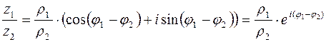 При выполнении деления комплексных чисел в тригонометрической форме их аргументы вычитаются, а модули нужно разделить.