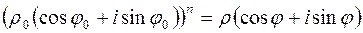 Из нее следует, что для возведения комплексного числа в любую натуральную степень его модуль нужно возвести в эту степень, а аргумент умножить на показатель этой степени.