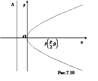 Это уравнение называется каноническим уравнением параболы. Из уравнения (7.8) видно, что
