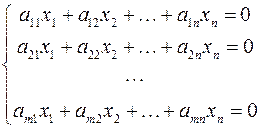 Линейное уравнение называется однородным, если его свободный член равен нулю, и неоднородным в противном случае. Система, состоящая из однородных уравнений называется однородной и имеет общий вид: