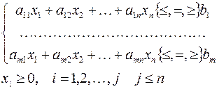Если целевая функция и система ограничений линейны, то задача математического программирования называется задачей линейного программирования и в общем виде может быть записана следующим образом: