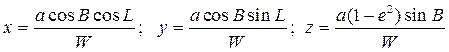 - отрезок Qn на рисунке 3. 1.- радиус первого вертикала. На практике возникает задача вычисления координат B, L, H по известным x, y, z. Рассмотрим вывод формул для решения этой задачи. Разделив второе уравнение (3. 16) на первое, получаем