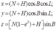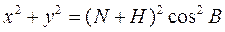 В настоящее время для решения геодезических задач все более используются спутниковые системы позиционирования, когда носителями координат являются созвездия специальных ИСЗ, находящихся на значительном удалении от поверхности земного эллипсоида. Если это удаление характеризуется геодезической высотой H, то уравнения связи пространственных прямоугольных и геодезических широт, долгот и высот принимают вид, следуемый из (3. 15), если к каждой из координат x, y, z прибавить проекции геодезической высоты H на соответствующие координатные оси