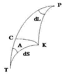 На рисунке 4. 5 имеем полярный сфероидический треугольник PTK,
