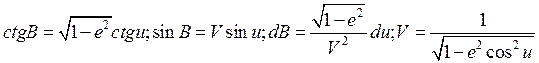 Для вывода этого уравнения на поверхности земного эллипсоида перейдем в системе (4. 39) от геодезической широты В к приведенной широте u по ранее полученной формуле (3. 9) и формулам, следуемым из нее: