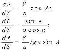 в котором выражаем dL из второго уравнения (4. 38) в функции dA и запишем систему трех дифференциальных уравнений для геодезической линии эллипсоида в виде
