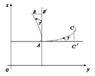 Кроме того, получим аналитическое представление основного свойства конформных проекций, заключающегося в том, что масштаб длин не зависит от направления. На рисунке 7. 2 имеем изображение на плоскости меридиана АВ и параллели АС точки А. Угол γ, образованный прямой, параллельной изображению осевого меридиана (оси абсцисс) и меридиана точки А – сближение меридиана в данной точке.